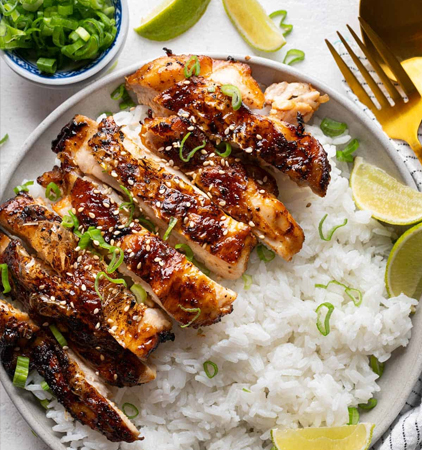 Sliced Chicken | Hongkong Sauce | Jasmine Rice | Gyoza